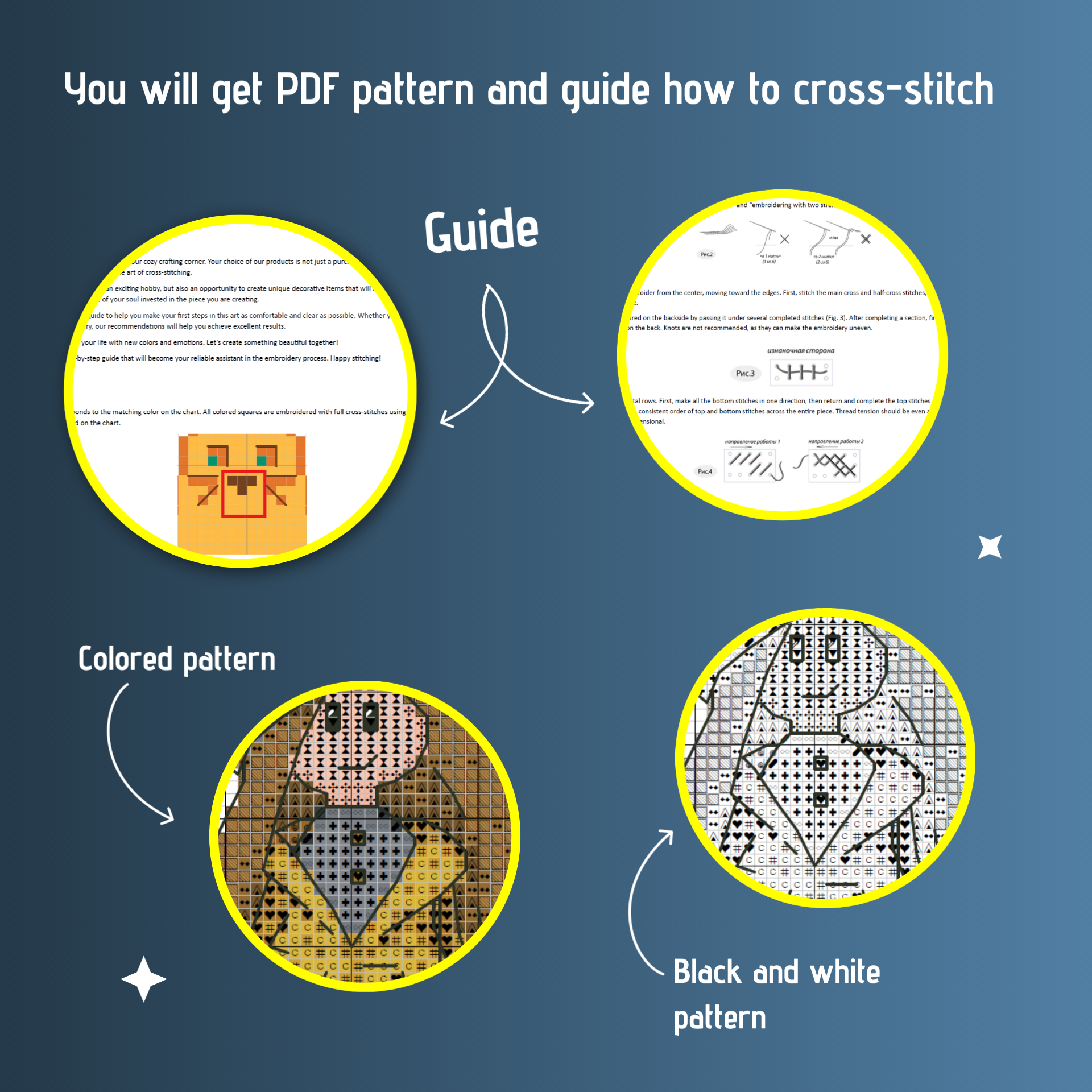 📥You will get PDF pattern (colored and black&white) and guide how to cross-stitch.