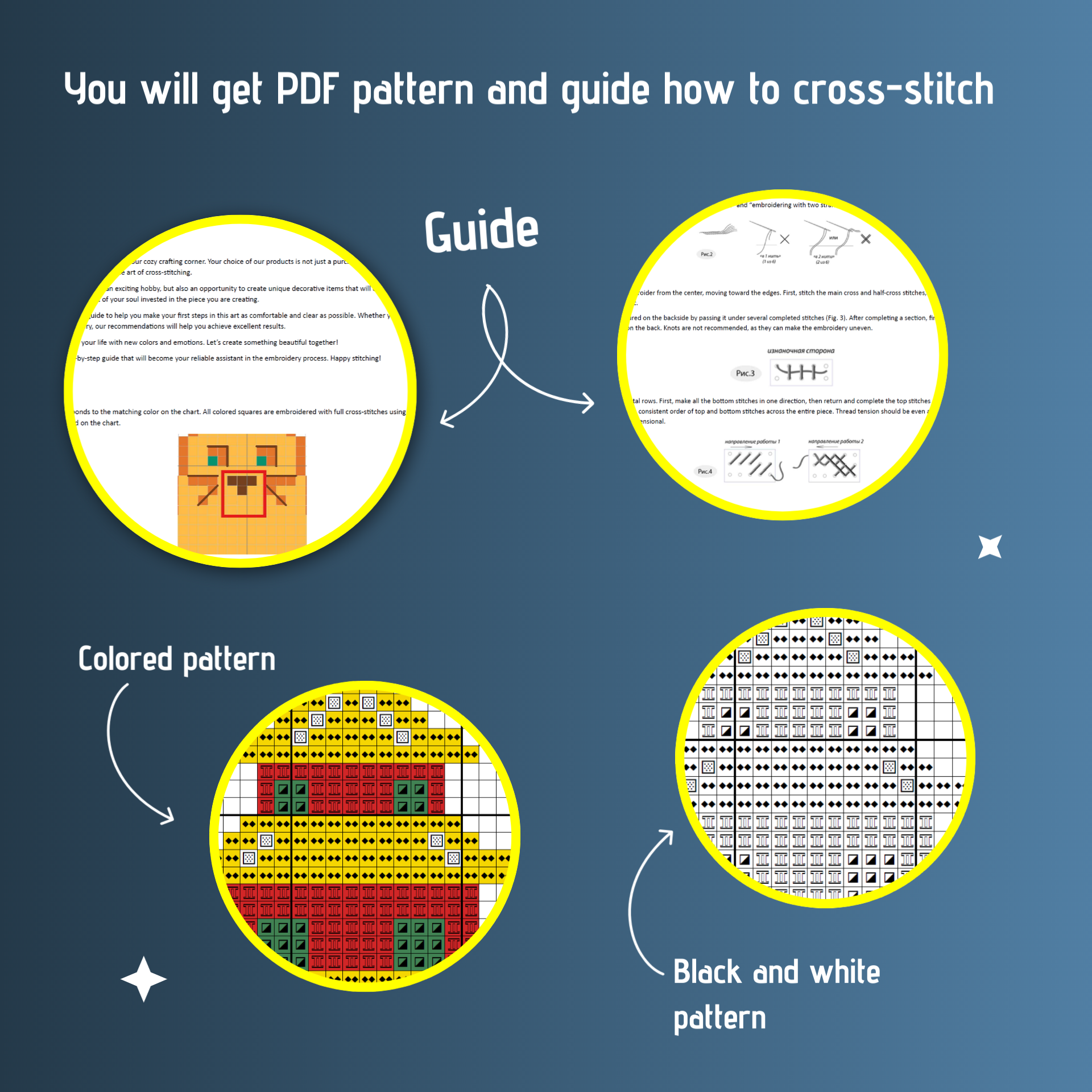 📥You will get PDF pattern (colored and black&white) and guide how to cross-stitch.