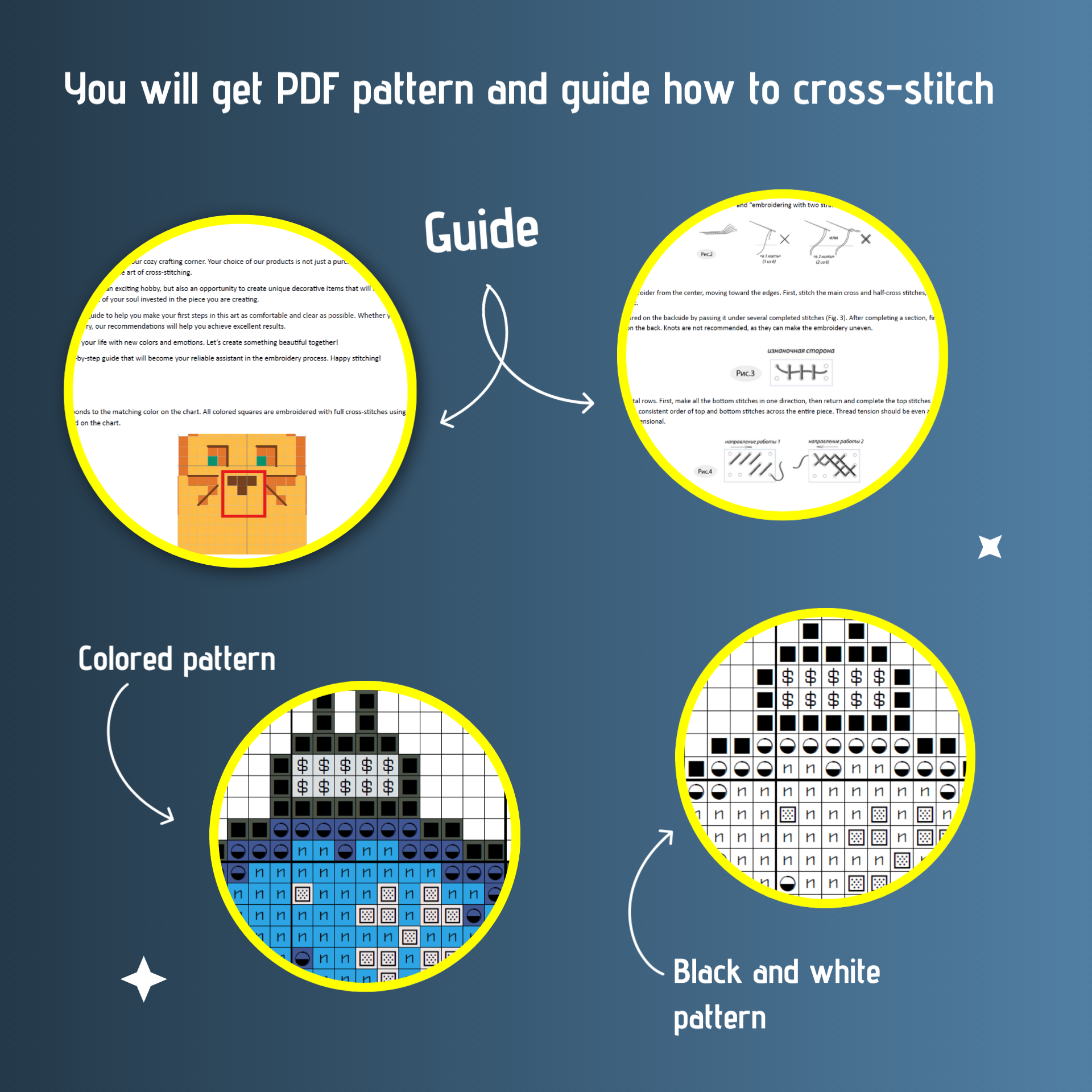 📥You will get PDF pattern (colored and black&white) and guide how to cross-stitch.