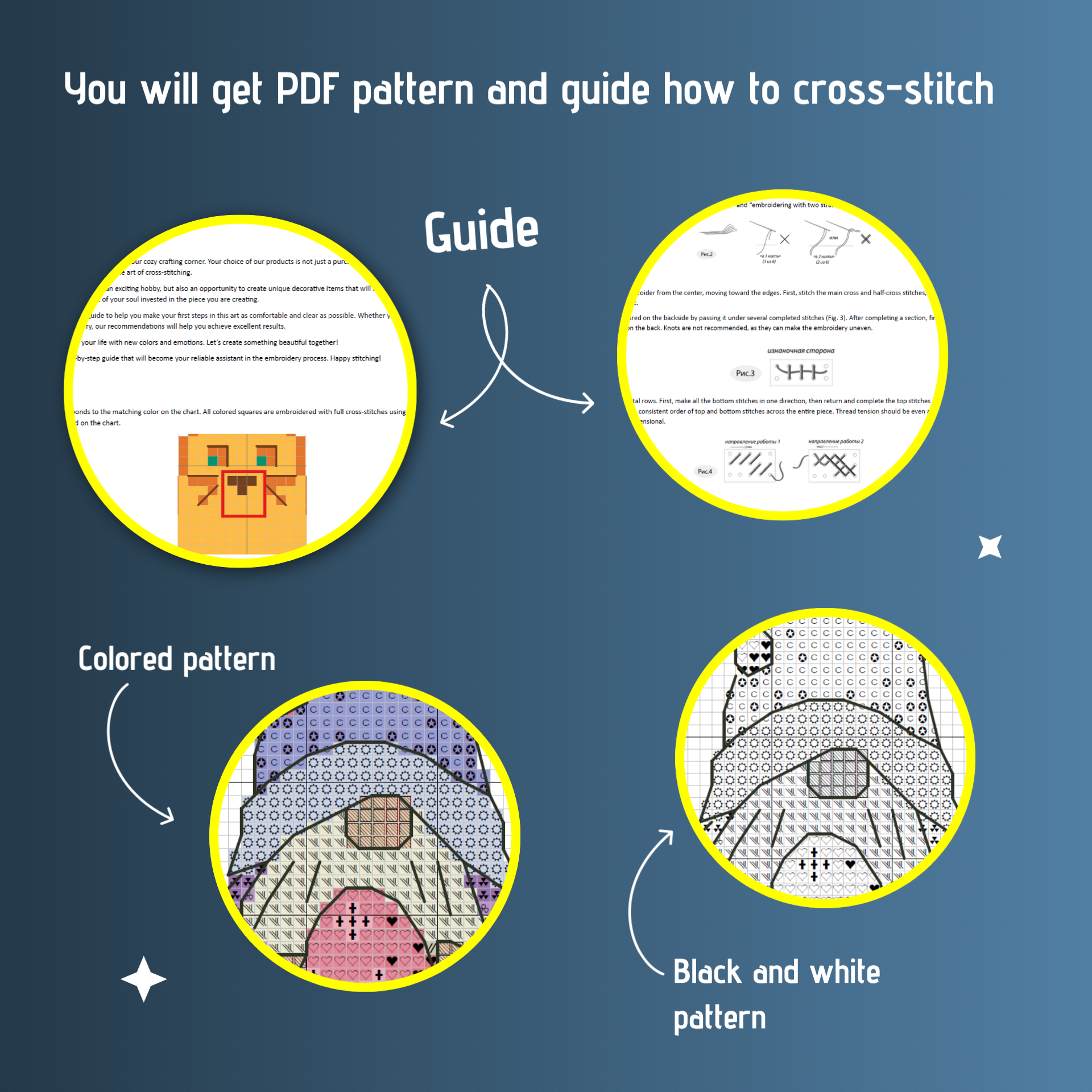 📥You will get PDF pattern (colored and black&white) and guide how to cross-stitch.
