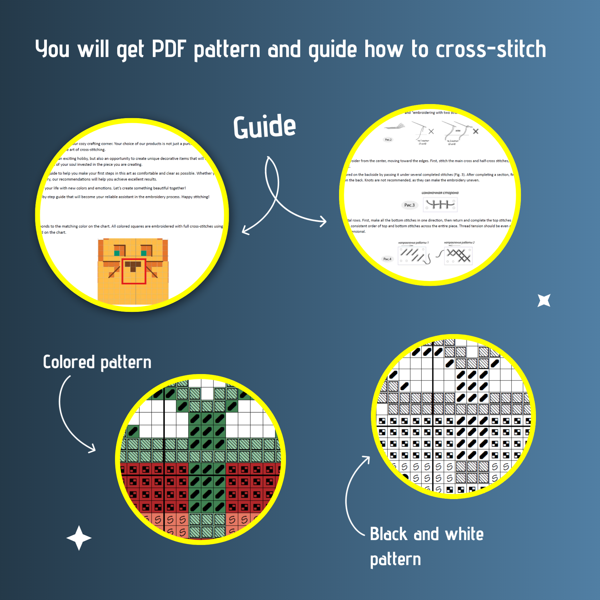 📥You will get PDF pattern (colored and black&white) and guide how to cross-stitch.