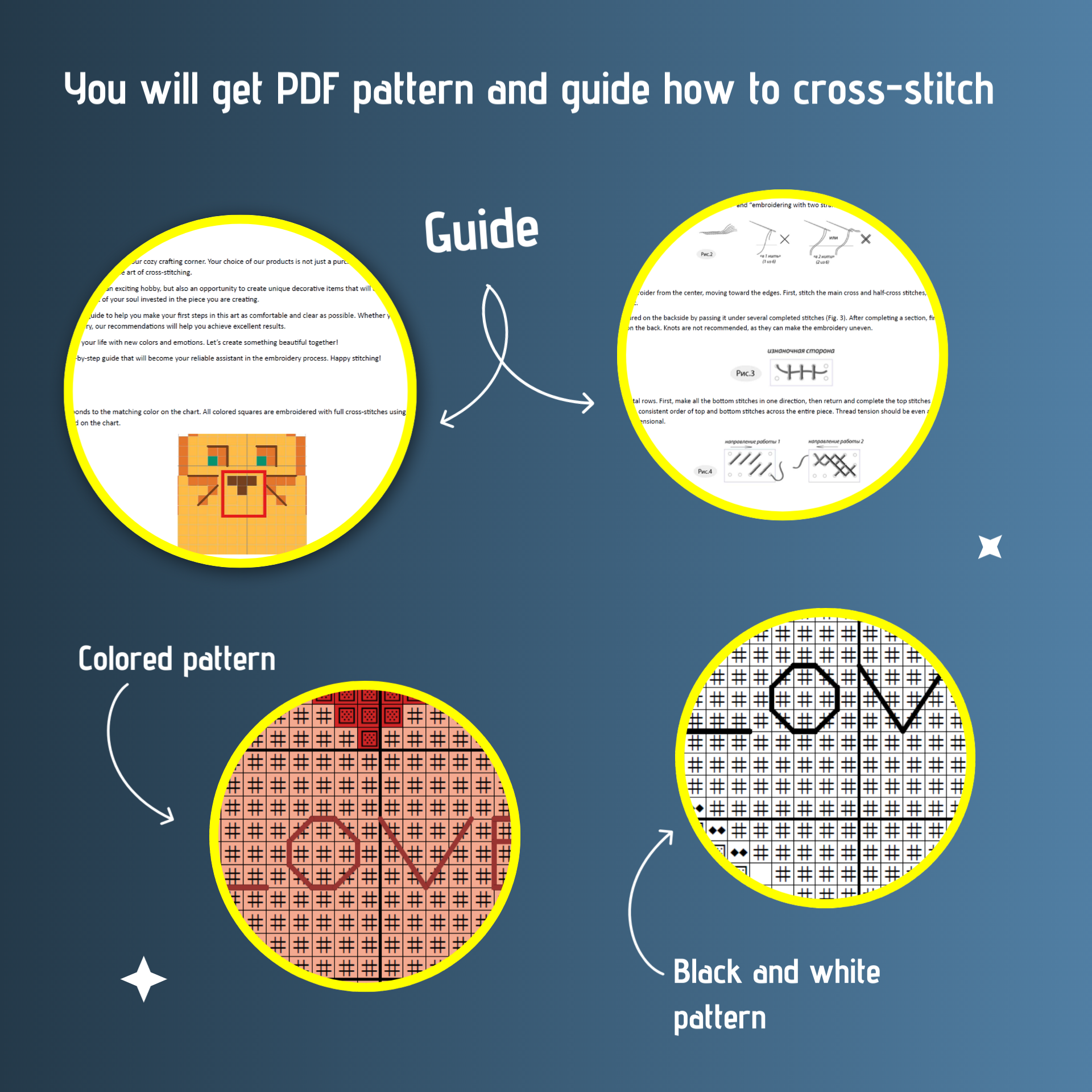 📥You will get PDF pattern (colored and black&white) and guide how to cross-stitch.