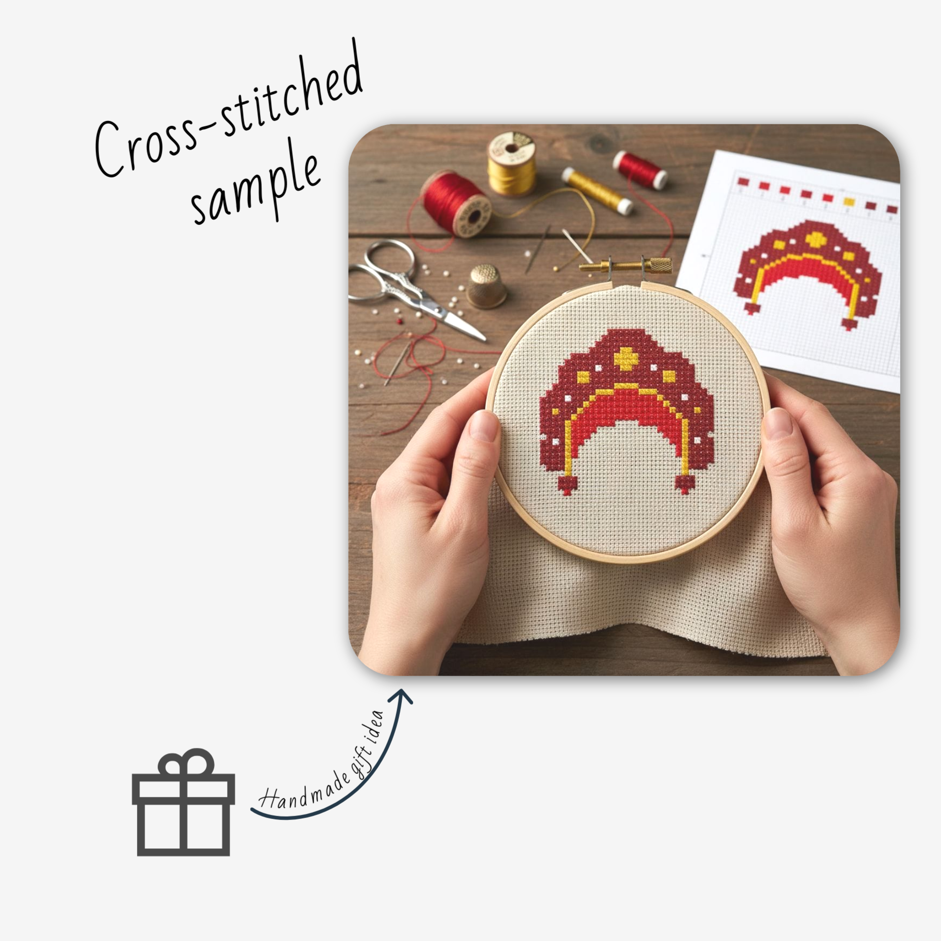 Small cross-stitch pattern for beginners. Russian headdress. Perfect for creating handmade gifts like magnets or pinkeeps. Ideal for stress relief and relaxation. Crafting and creativity help manage stress and unwind after a busy day.