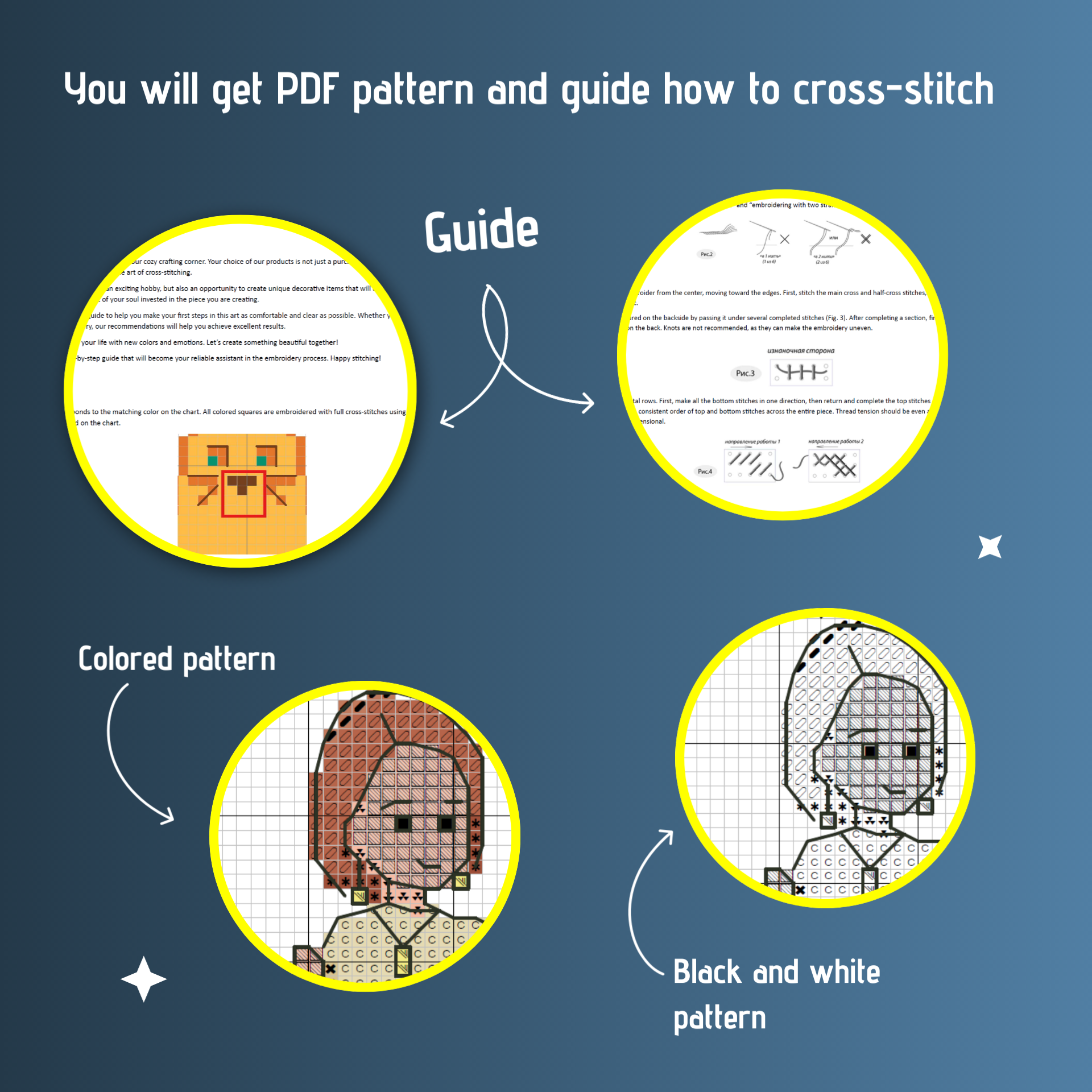 📥You will get PDF pattern (colored and black&white) and guide how to cross-stitch.