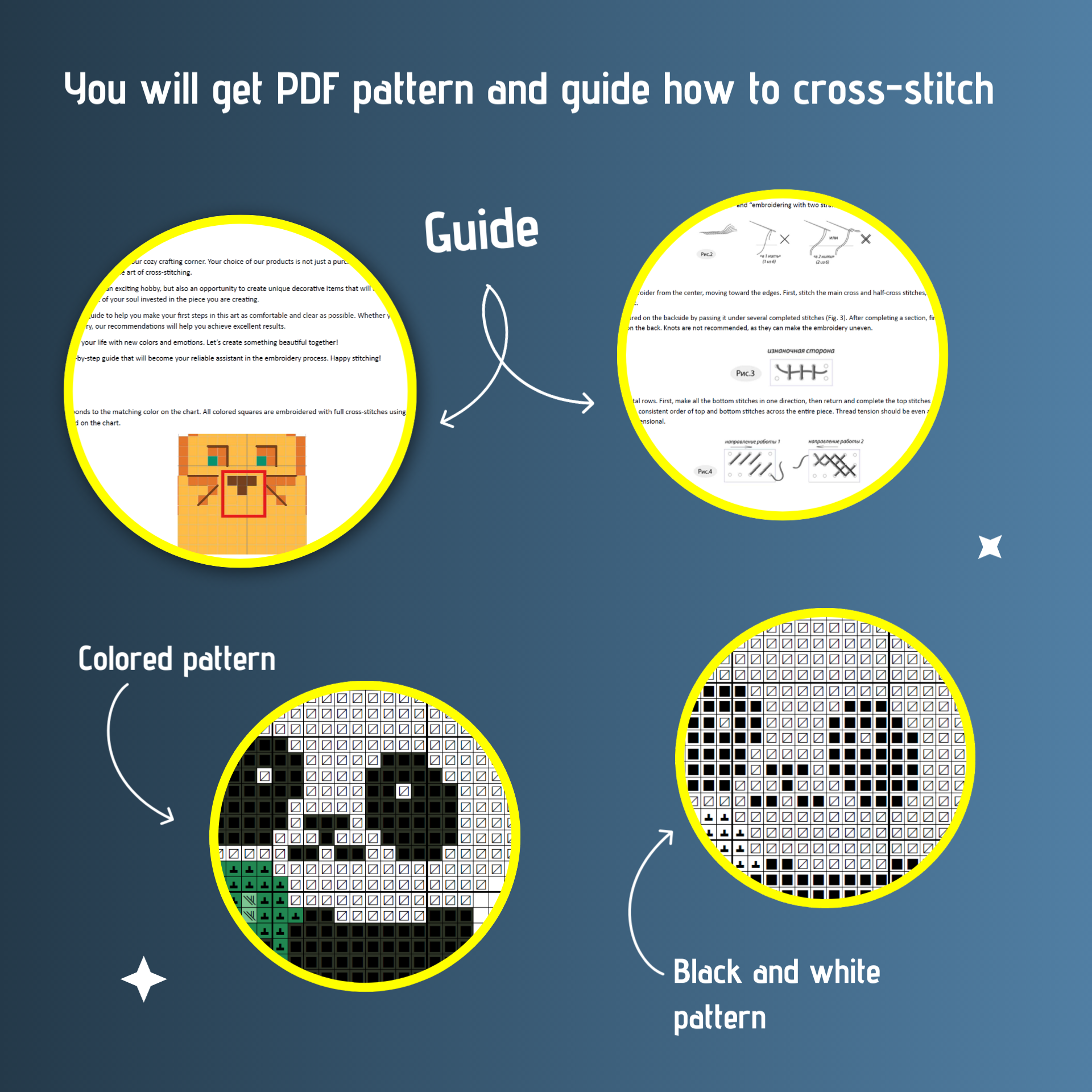 📥You will get PDF pattern (colored and black&white) and guide how to cross-stitch.