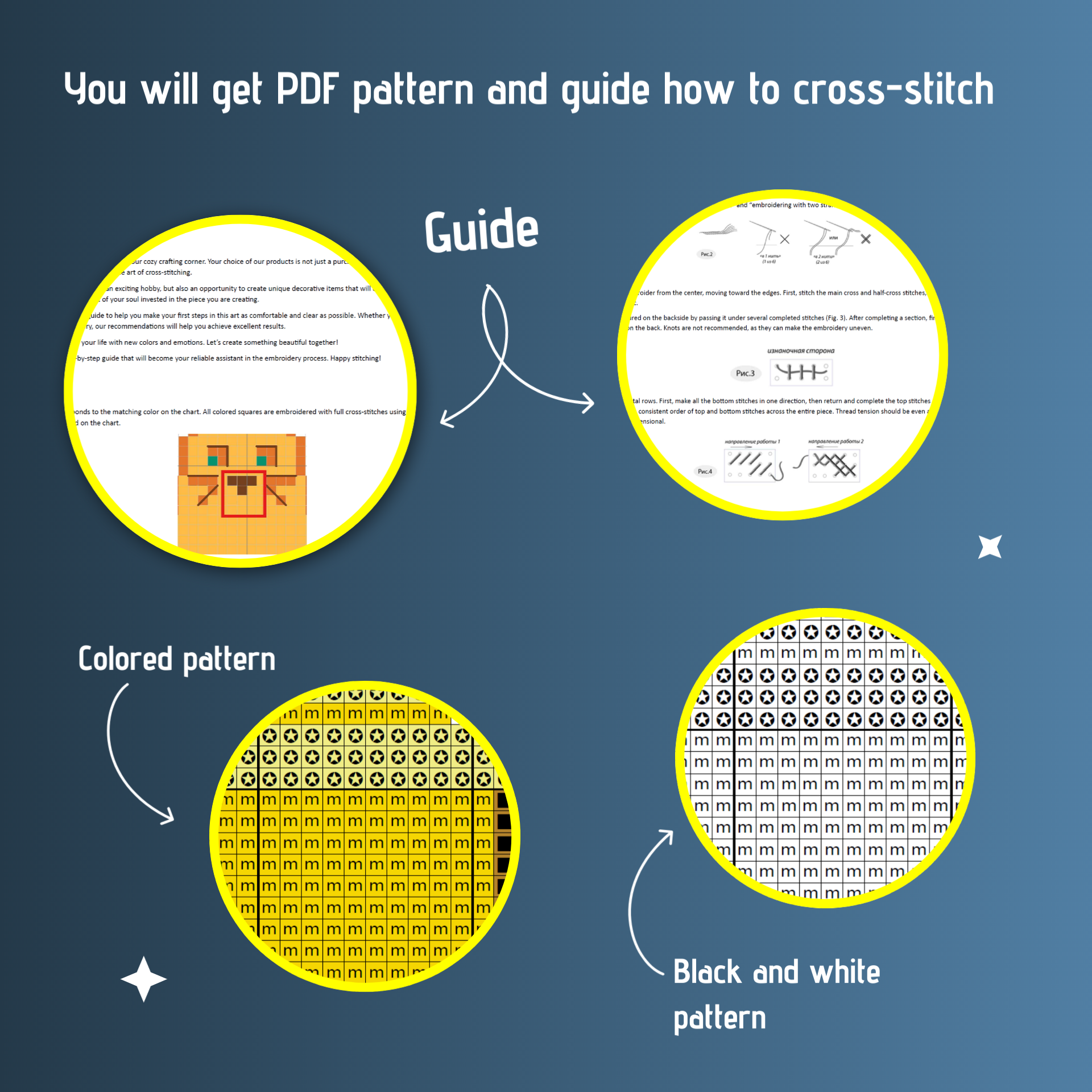 📥You will get PDF pattern (colored and black&white) and guide how to cross-stitch.