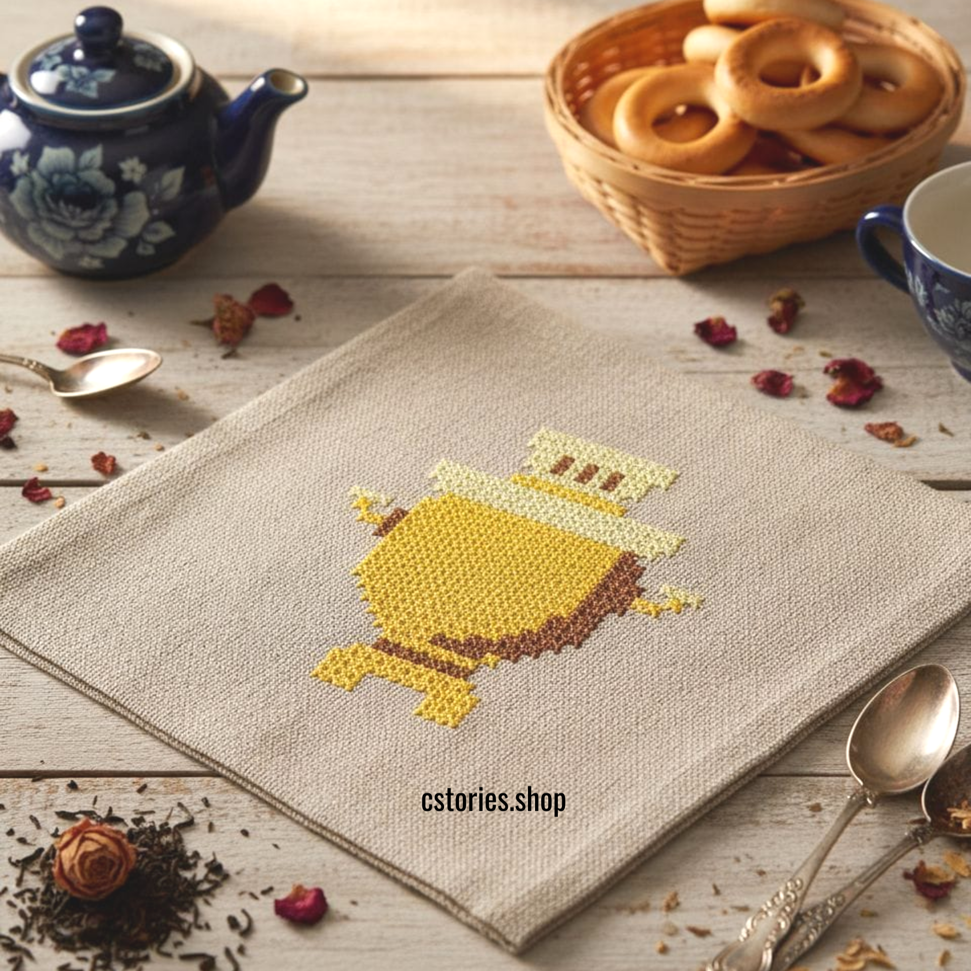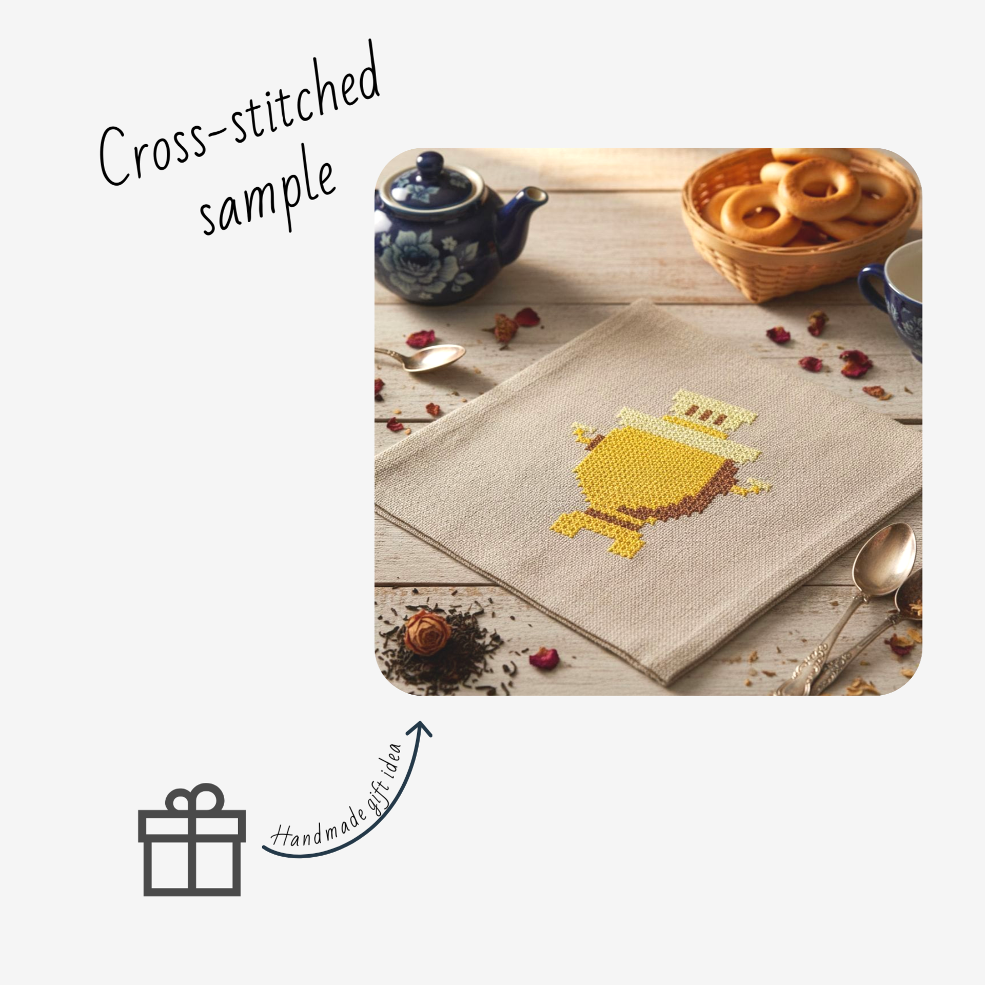 Small cross-stitch pattern for beginners. Russian tea urn. Perfect for creating handmade gifts like magnets or pinkeeps. Ideal for stress relief and relaxation. Crafting and creativity help manage stress and unwind after a busy day.