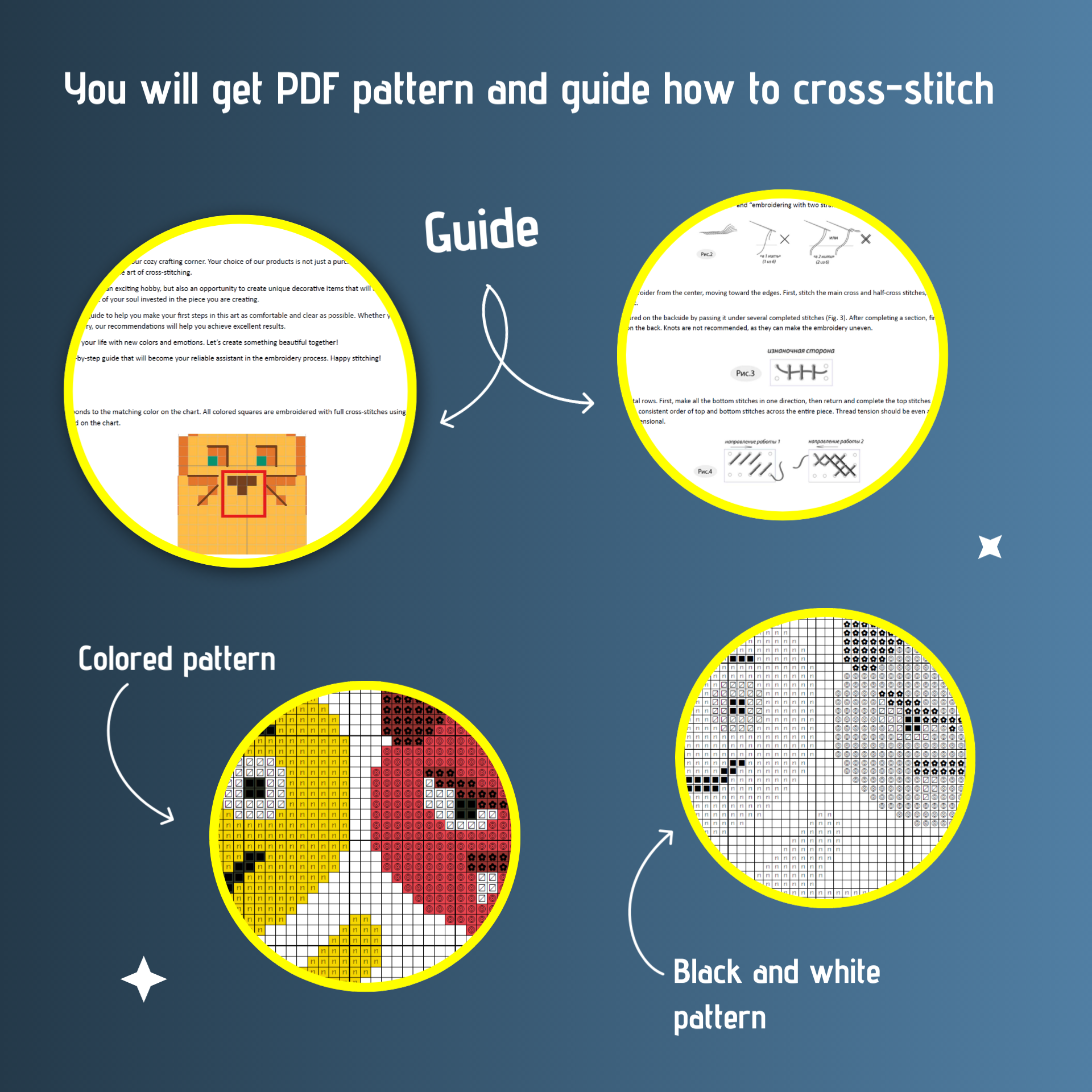 📥You will get PDF pattern (colored and black&white) and guide how to cross-stitch.