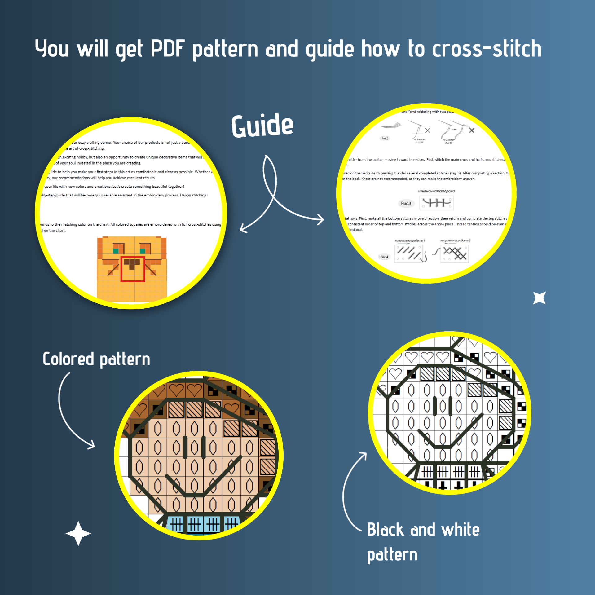 📥You will get PDF pattern (colored and black&white) and guide how to cross-stitch.
