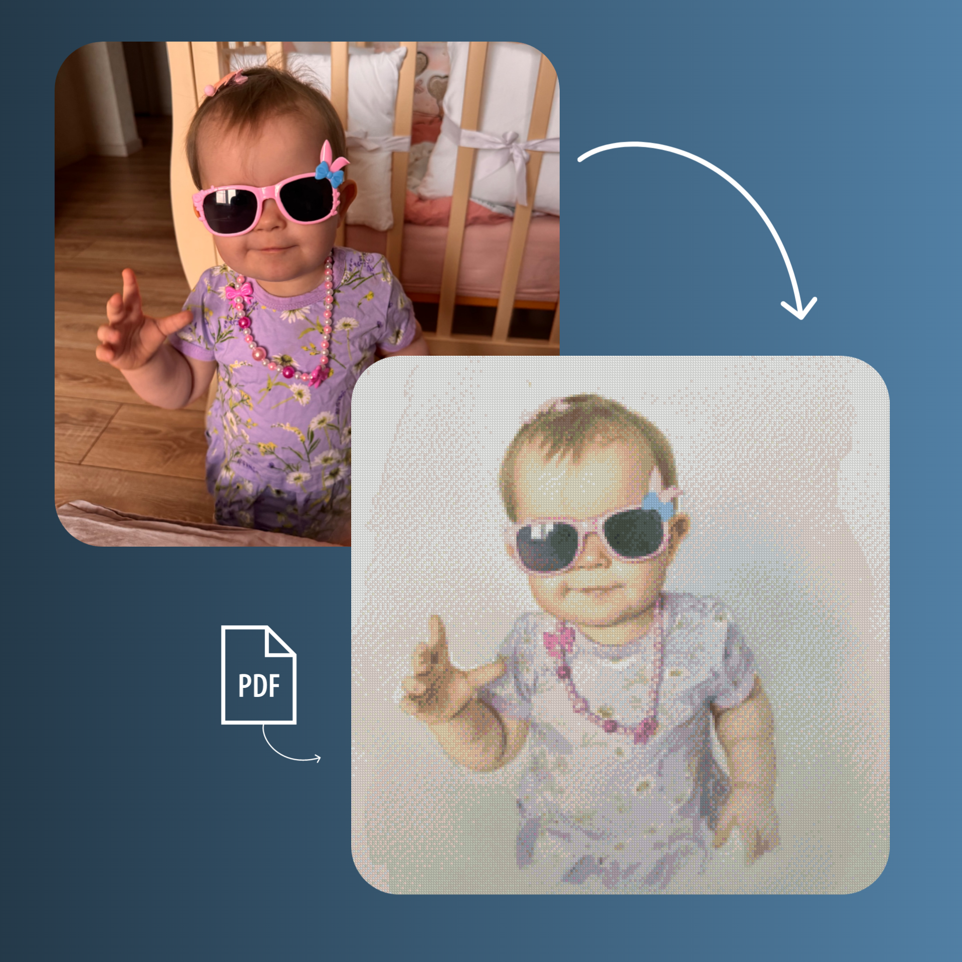 Turn your cherished photo into a cross‑stitch masterpiece! We transform your favourite image into a delicate watercolour‑style pattern —creating a unique, hand‑crafted keepsake you’ll treasure forever. Ideal for stress relief and relaxation. Crafting and creativity help manage stress and unwind after a busy day.