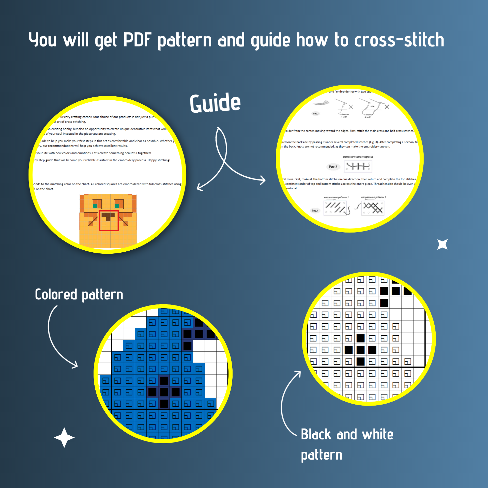 📥You will get PDF pattern (colored and black&white) and guide how to cross-stitch.