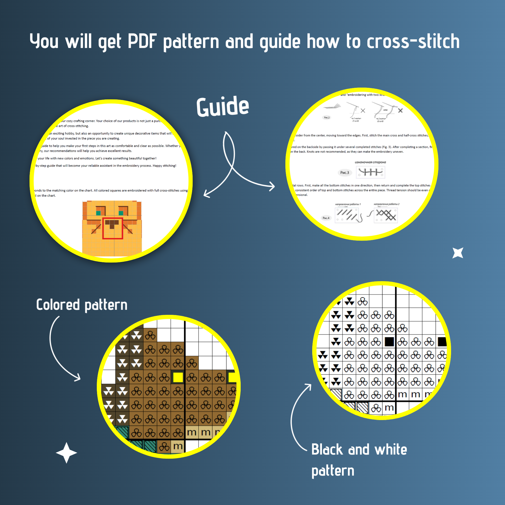 📥You will get PDF pattern (colored and black&white) and guide how to cross-stitch.